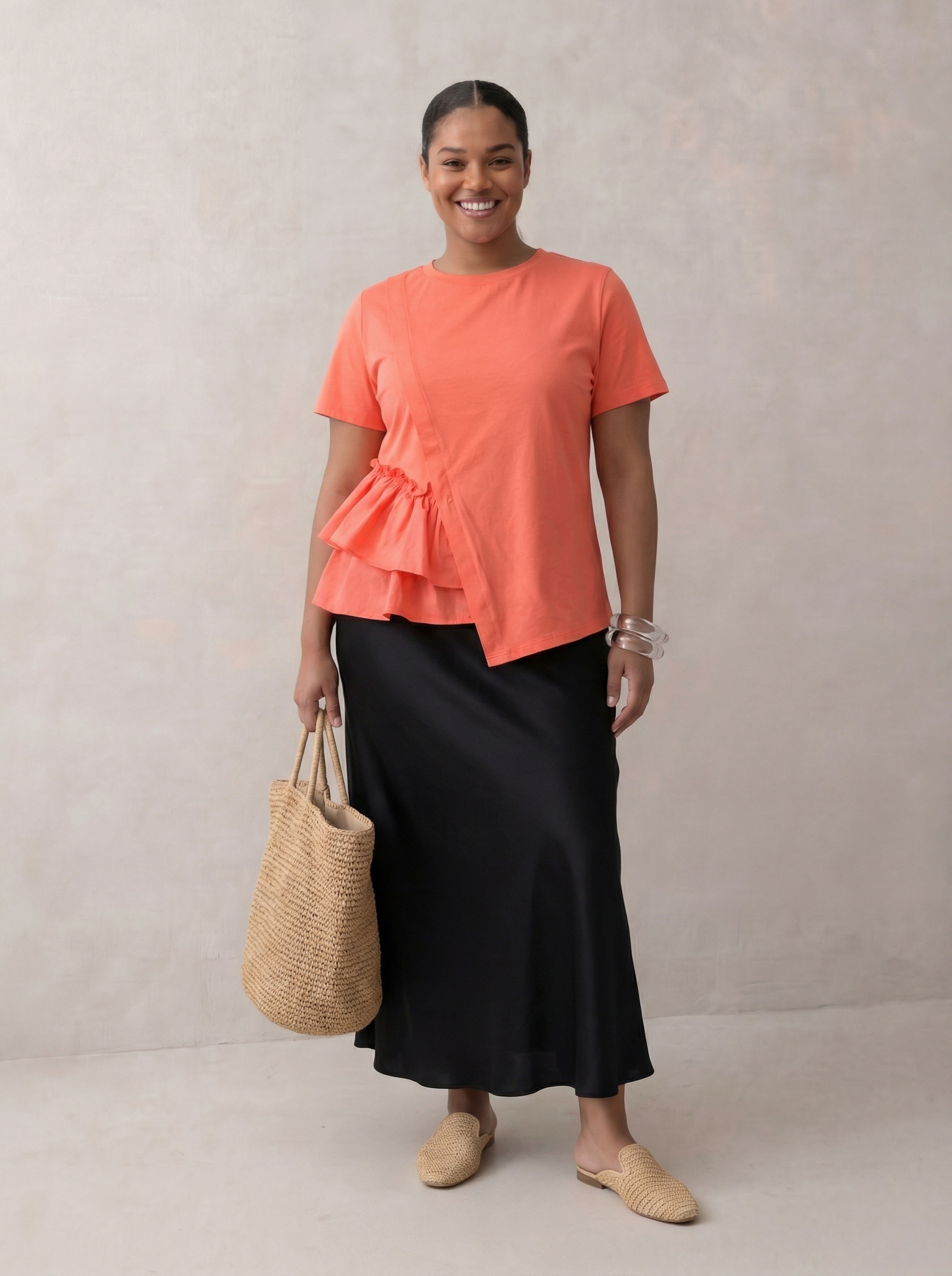 Элегантный крой подчеркнёт фигуру, добавляя образу нежности и женственности. Футболка подходит для любого случая – от повседневных прогулок до вечерних мероприятий. Сочетайте с любимыми аксессуарами и будьте уверены – вы будете сиять!
