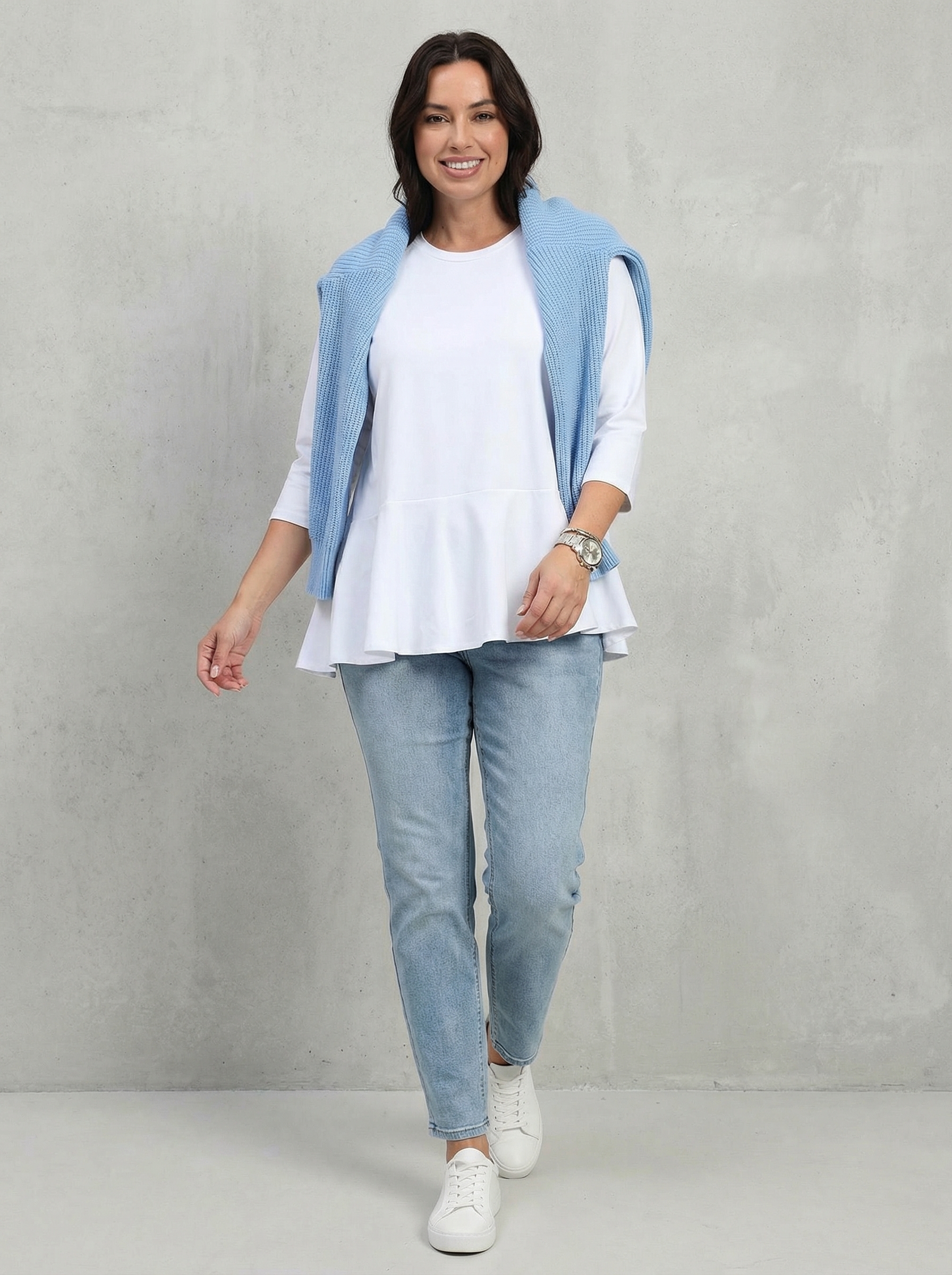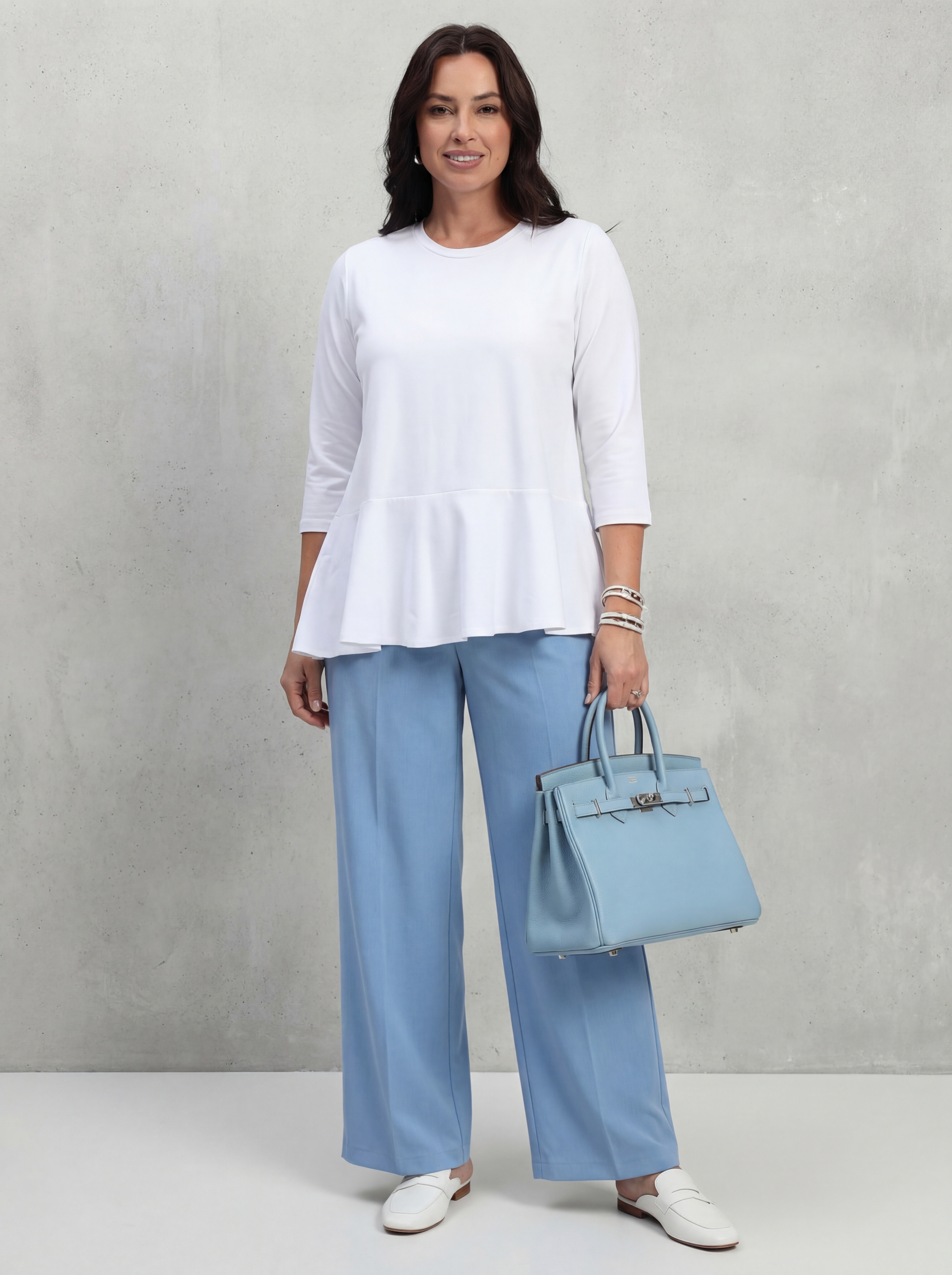 Футболка женская больших размеров с баской и рукавом 3/4 от бренда MaxXLife&Ulyana Kuptsova. Отрезная баска по линии талии формирует силуэт фигуры песочные часы и создает образ более женственным и легким! Нами выбран качественный трикотаж, на 92% состоящий из хлопка. Хлопок превосходно отводит влагу и позволяет телу дышать. Эластан не дает материалу мяться, вытягиваться и терять свой внешний вид даже после многократных стирок. Однотонная футболка - это универсальный предмет гардероба. При создании одежды команда бренда всегда принимает во внимание девушек и женщин размера plus size. Мы знаем конструкторские особенности моделей больших размеров и учитываем это при пошиве. В нашей одежде вам будет удобно, в то же время вы будете яркой и молодой! Добавляйте магазин в избранное, чтобы не пропустить новинки!