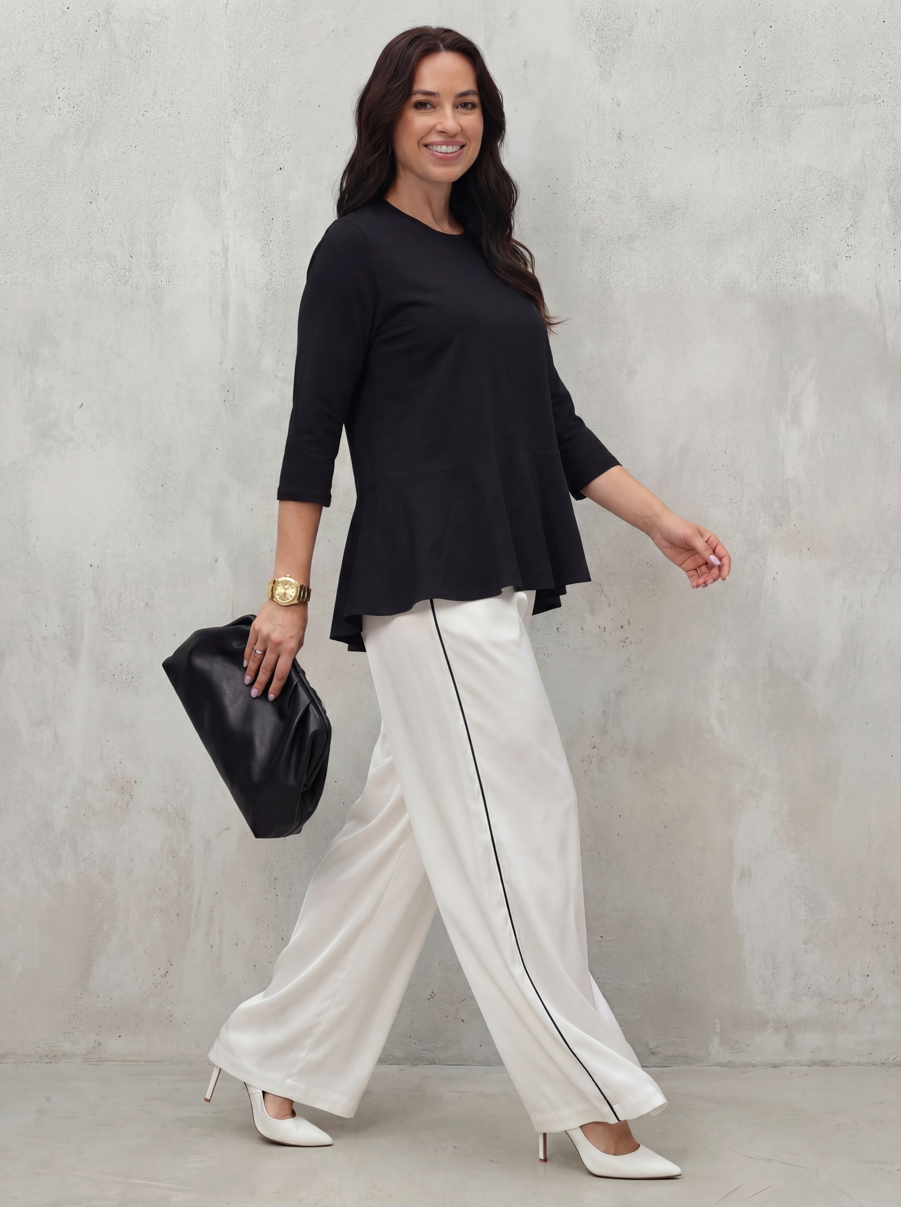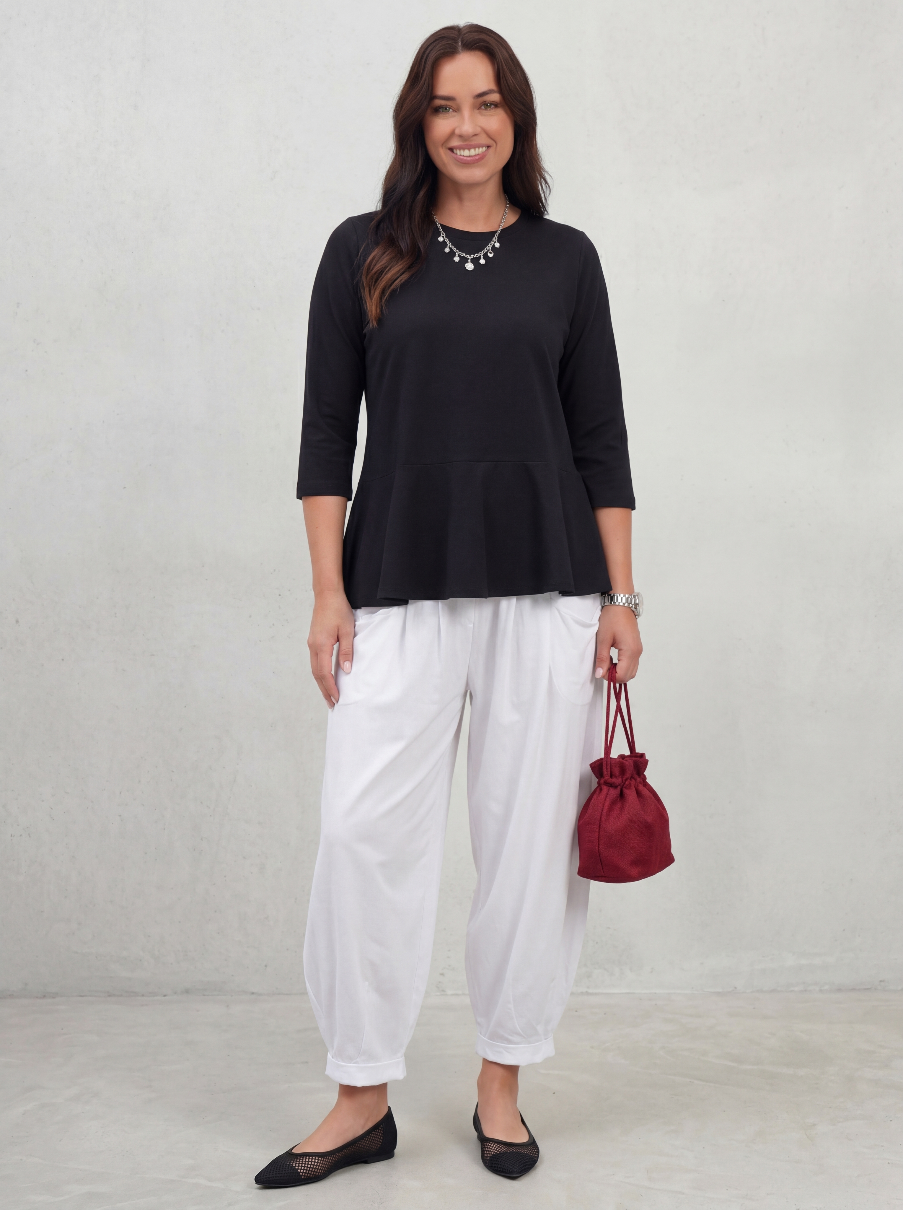 Футболка женская больших размеров с баской и рукавом 3/4 от бренда MaxXLife&Ulyana Kuptsova. Отрезная баска по линии талии формирует силуэт фигуры песочные часы и создает образ более женственным и легким! Нами выбран качественный трикотаж, на 92% состоящий из хлопка. Хлопок превосходно отводит влагу и позволяет телу дышать. Эластан не дает материалу мяться, вытягиваться и терять свой внешний вид даже после многократных стирок. Однотонная футболка - это универсальный предмет гардероба. При создании одежды команда бренда всегда принимает во внимание девушек и женщин размера plus size. Мы знаем конструкторские особенности моделей больших размеров и учитываем это при пошиве. В нашей одежде вам будет удобно, в то же время вы будете яркой и молодой! Эта стильная футболка станет незаменимой частью вашего гардероба и подчеркнет вашу индивидуальность. Сочетайте ее с джинсами, юбками или брюками – она идеально подойдет к любому образу. Покупая у нас, вы выбираете качество, комфорт и уверенность в каждом изделии. Не упустите возможность приобрести модную вещь по доступной цене! Заказывайте прямо сейчас и будьте неотразимы каждый день!