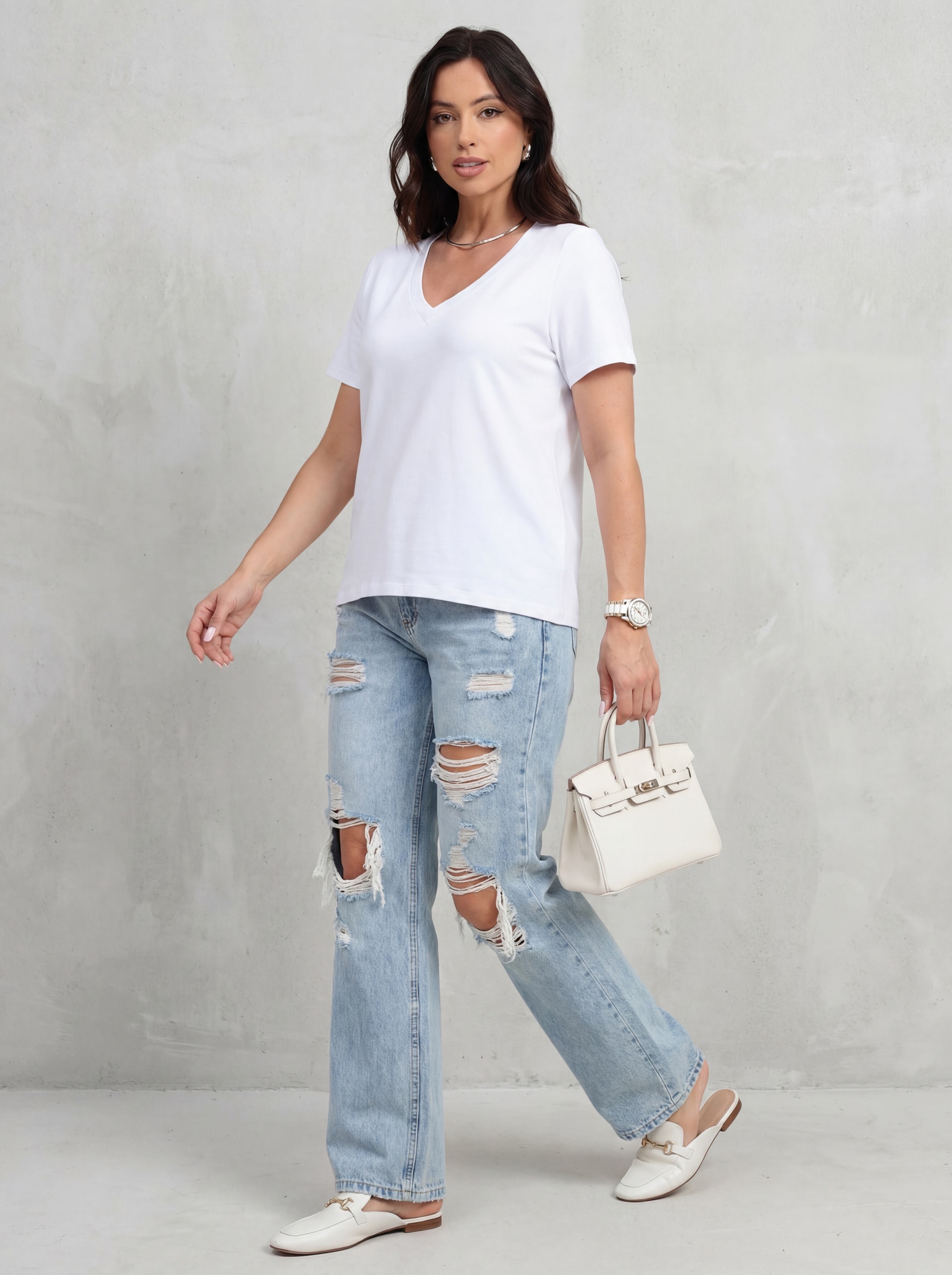 Она идеально подчеркивает фигуру, добавляет образу свежести и непринужденности. Изготовлена из мягкого дышащего материала, который обеспечивает максимальный комфорт в течение всего дня. Базовая футболка – это универсальность, стиль и качество, которые всегда остаются в моде.
